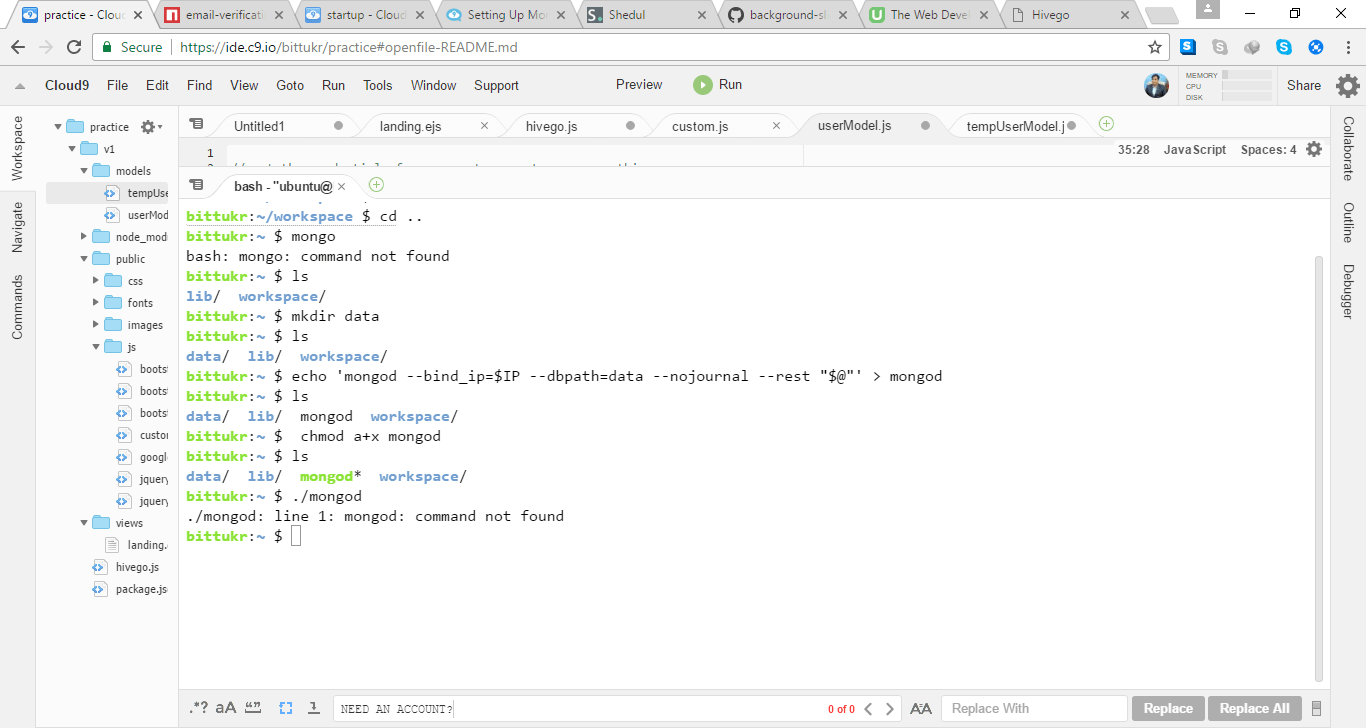 node.js want to install mongodb on cloud9 local server Stack Overflow from stackoverflow.com