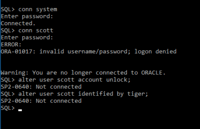 oracle 11g not able to connect with scott user, showing invalid from stackoverflow.com